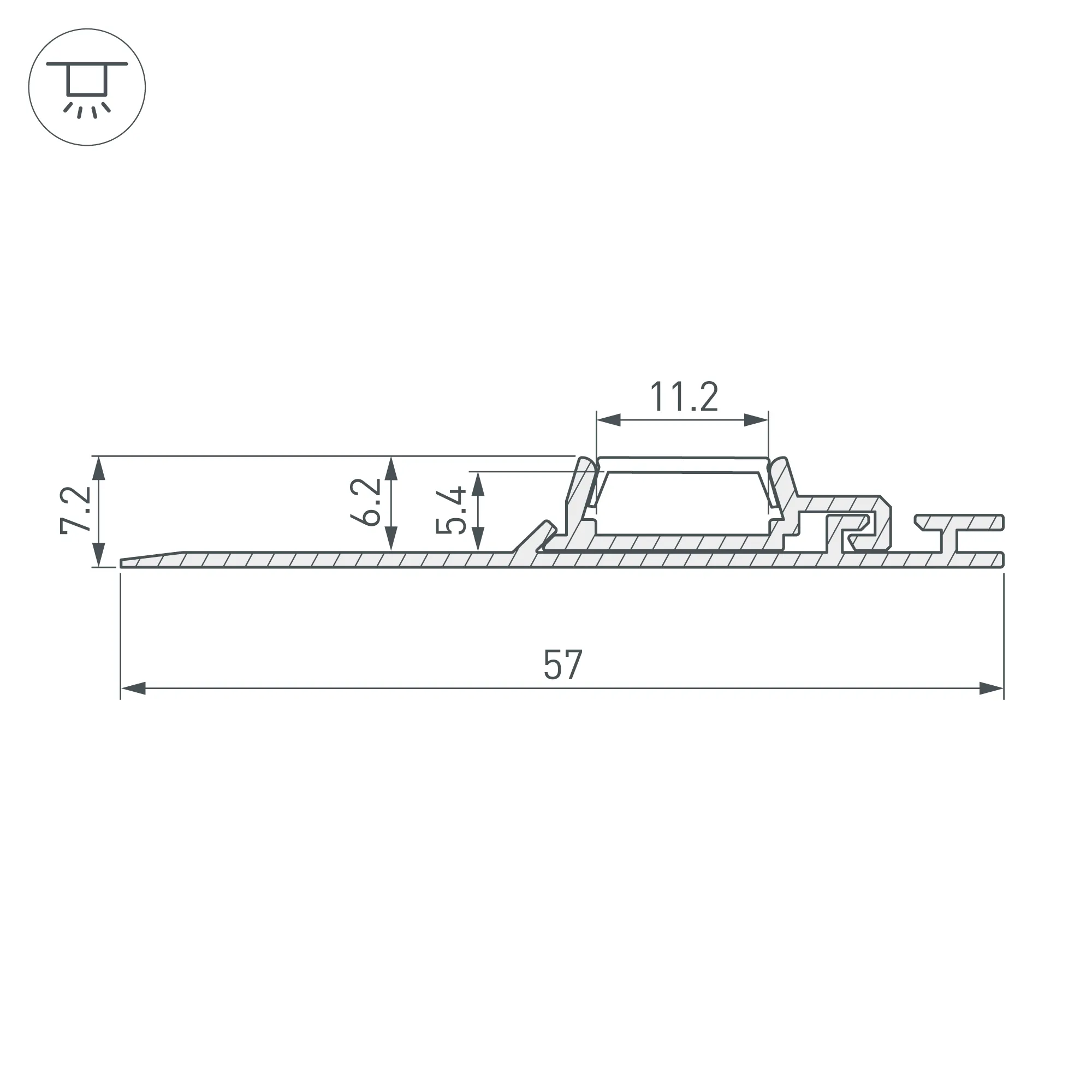 Под заказ от 50 м. Алюминиевый профиль для светодиодных лент и линеек, для подсветки потолочных ниш. Луч света направлен перпендикулярно плоскости потолка. В комплекте: основание, профиль, силиконовый уплотнительный шнур. Габаритные размеры (L×W×H): 2000x57x7 мм. Ширина площадки для ленты 10 мм. Экраны, заглушки и другие аксессуары приобретаются отдельно. Цена за 1 метр.