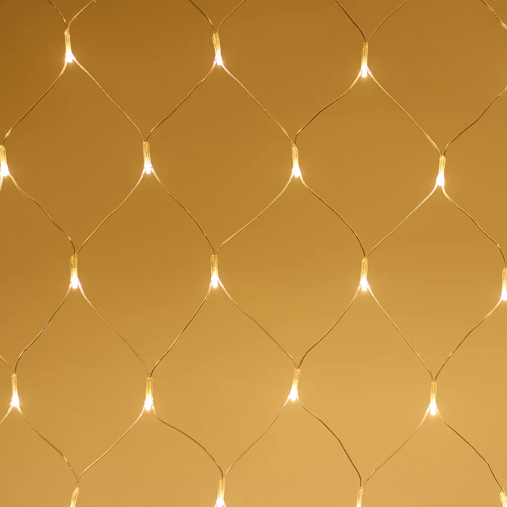 Светодиодная сеть Home. 1500x1500 (длина 1500 мм, высота 1500 мм). Цвет свечения ТЕПЛЫЙ БЕЛЫЙ (3000 К). 150 светодиодов размером 5 мм со статическим и 8 динамическими эффектами свечения с резким световым рисунком (прозрачная вогнутая линза). Провод прозрачный, ПВХ. Питание 230 В, Мощность 12 Вт, защита IP20, применение в помещении. Аксессуары для подключения и выбора режима свечения в комплекте.