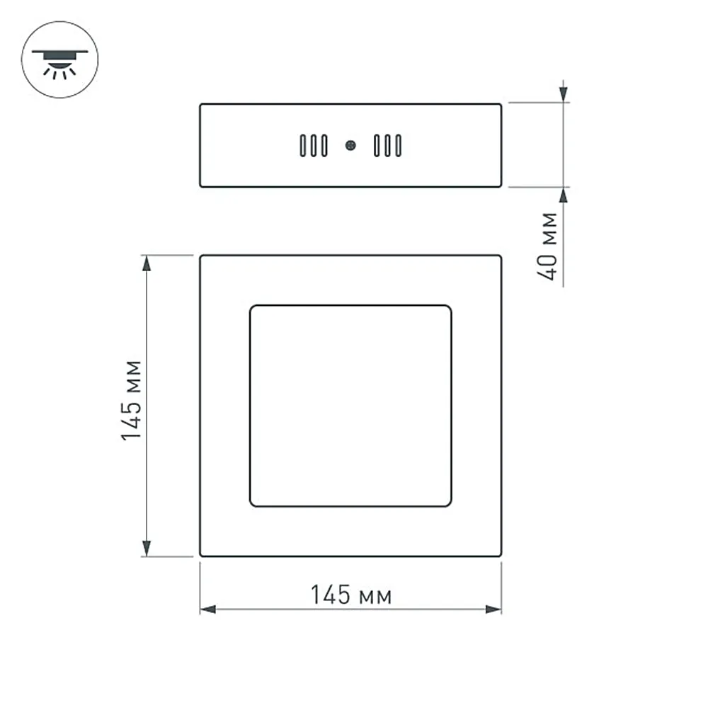 Накладная квадратная панель 9Вт, цвет ДНЕВНОЙ БЕЛЫЙ 4000K / 570 лм / 120°/ CRI(Ra)>80. Размер 145x145x40мм. Питание от сети AC 100-240V, драйвер в комплекте (арт.019618, 18-36V, 300mA, 9W).