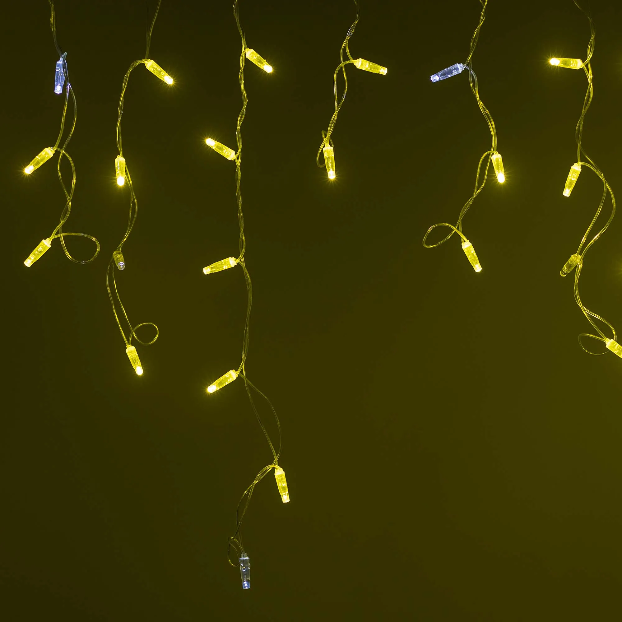 Светодиодная бахрома Classic. Размер 2400 мм (длина 2400 мм, по длине 24 нити высотой 200/600 мм). Количество светодиодов 88 шт размером 7 мм. Основной цвет свечения ЗОЛОТОЙ, эффект мерцания редких точек (БЕЛЫЙ 6000К) с резким световым рисунком (прозрачная вогнутая линза), соотношение светодиодов: 66 золотых постоянного свечения / 12 белых с мерцанием. Эффект частого мерцания. Провод прозрачный, ПВХ. Питание 230 В, Мощность 6 Вт, защита IP65, применение на улице под навесом. Аксессуары для подключения приобретаются отдельно.