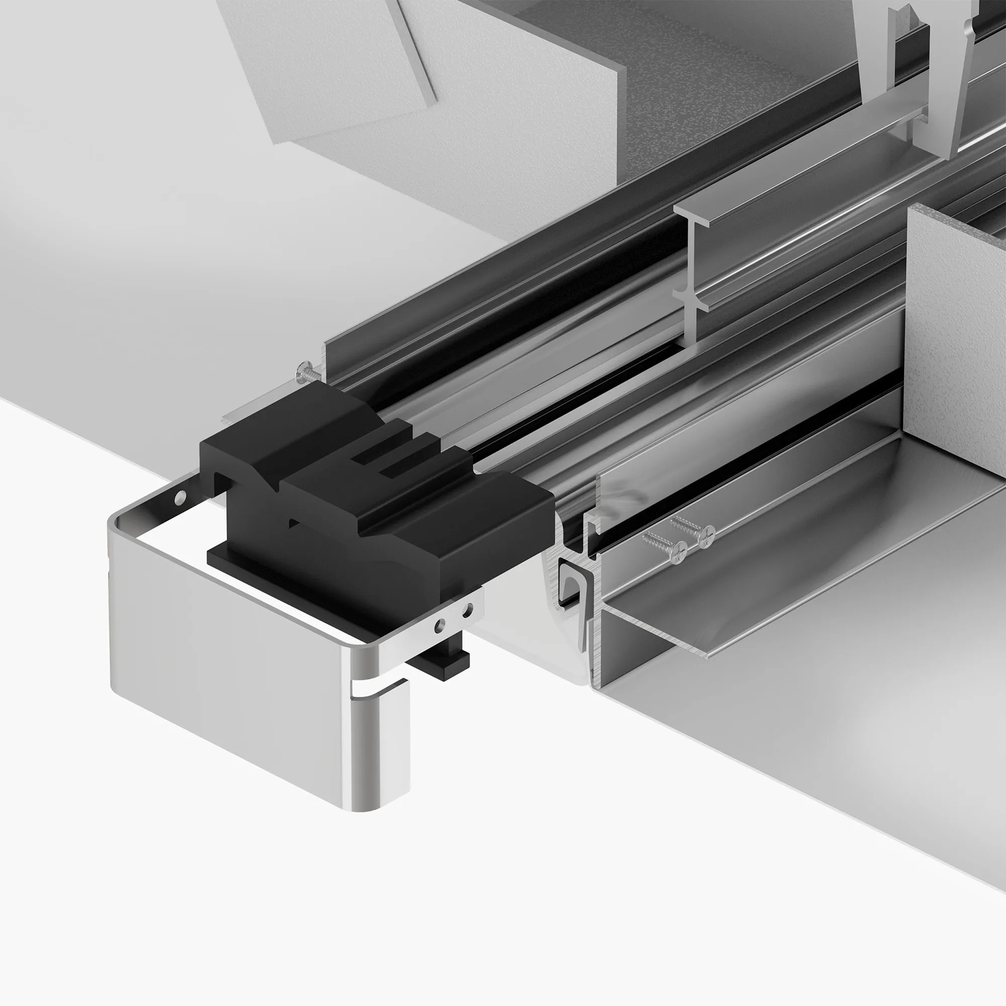 Заглушка металлическая для профиля FOLED-50-CENTER. Имеет паз для крепления натяжного потолка, что позволяет создавать линию света, заканчивающуюся посередине потолка. Цена за 1 шт.