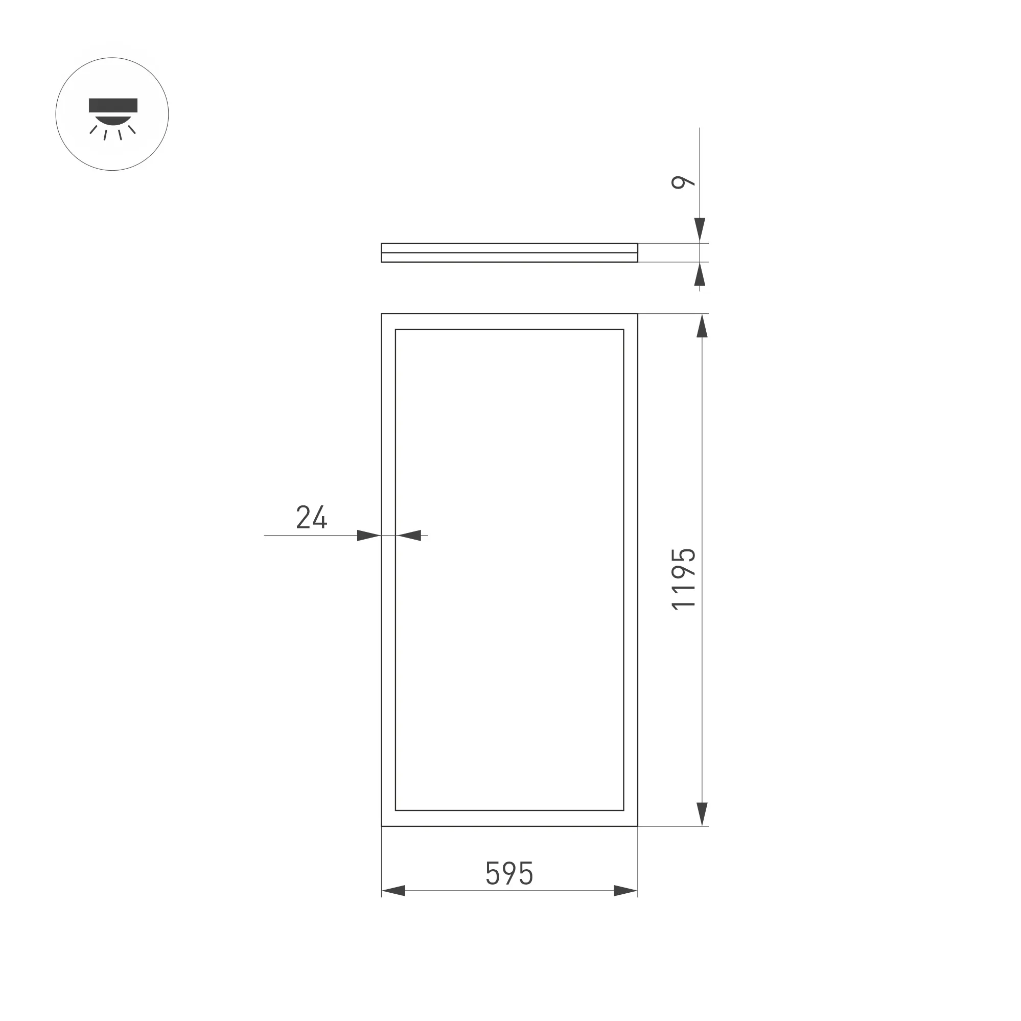 Поставка под заказ от 100 шт. Светодиодная панель с торцевой засветкой (edge-lit). Мощность 60 Вт, св. поток 6000 лм, 100 лм/Вт, теплый 3000 K, CRI>80, угол 120°, напряжение питания 230 В. Белый квадратный корпус из алюминия, экран PS, LGP PMMA, степень защиты IP20. Размер: длина 1195 мм, ширина 595 мм, высота 9 мм. Монтаж встраиваемый, установочное отверстие длина 1175 мм, ширина 575 мм. Драйвер 27-42 В, 1500 мА, пульсация <1%.