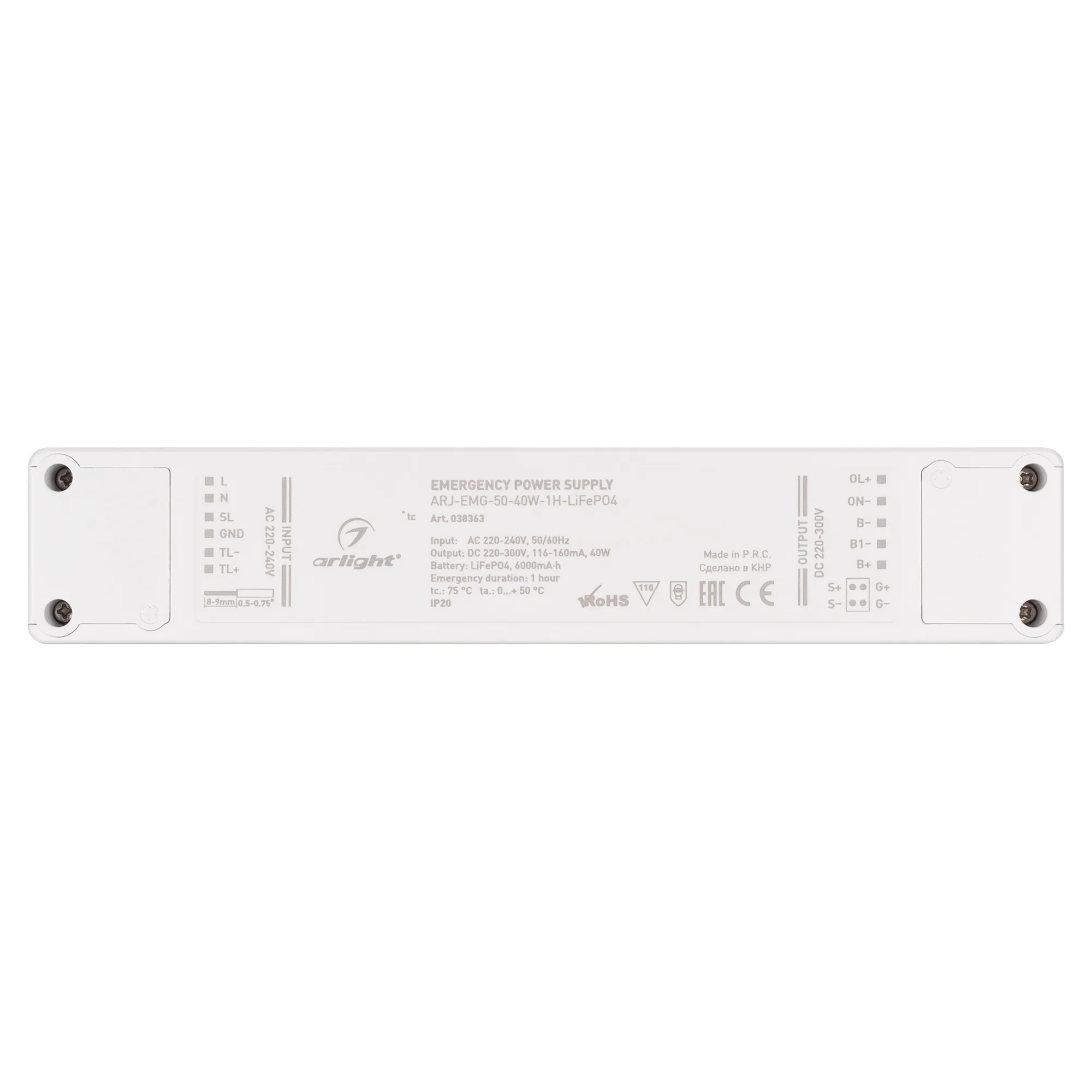 Блок аварийного питания ARJ-EMG-50-40W-1H-LiFePO4 (Arlight, IP20 Пластик, 3 года)