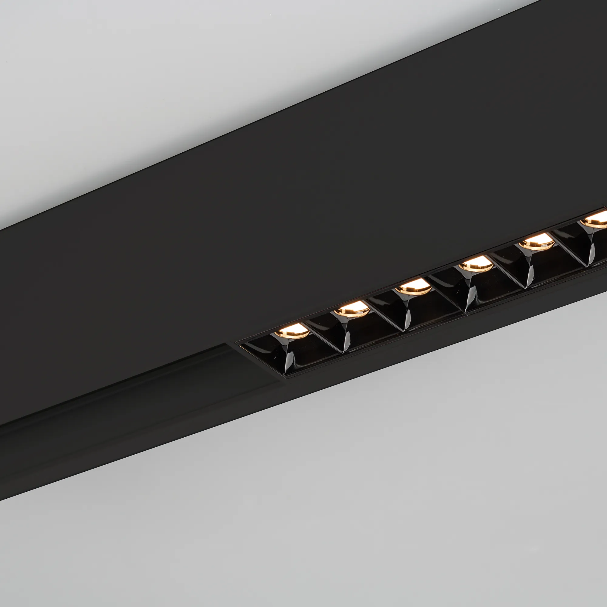 Светильник для магнитных треков шириной 45мм, 18Вт с управлением DALI. Цвет свечения ДНЕВНОЙ 4000K, световой поток 1400лм, угол 15°, CRI>90. Корпус прямоугольный, металл, цвет черный, IP20. Размеры LxWxH 481x35x43мм. Входное напряжение DC24V, мощность 18Вт. Драйвер поставляется отдельно.