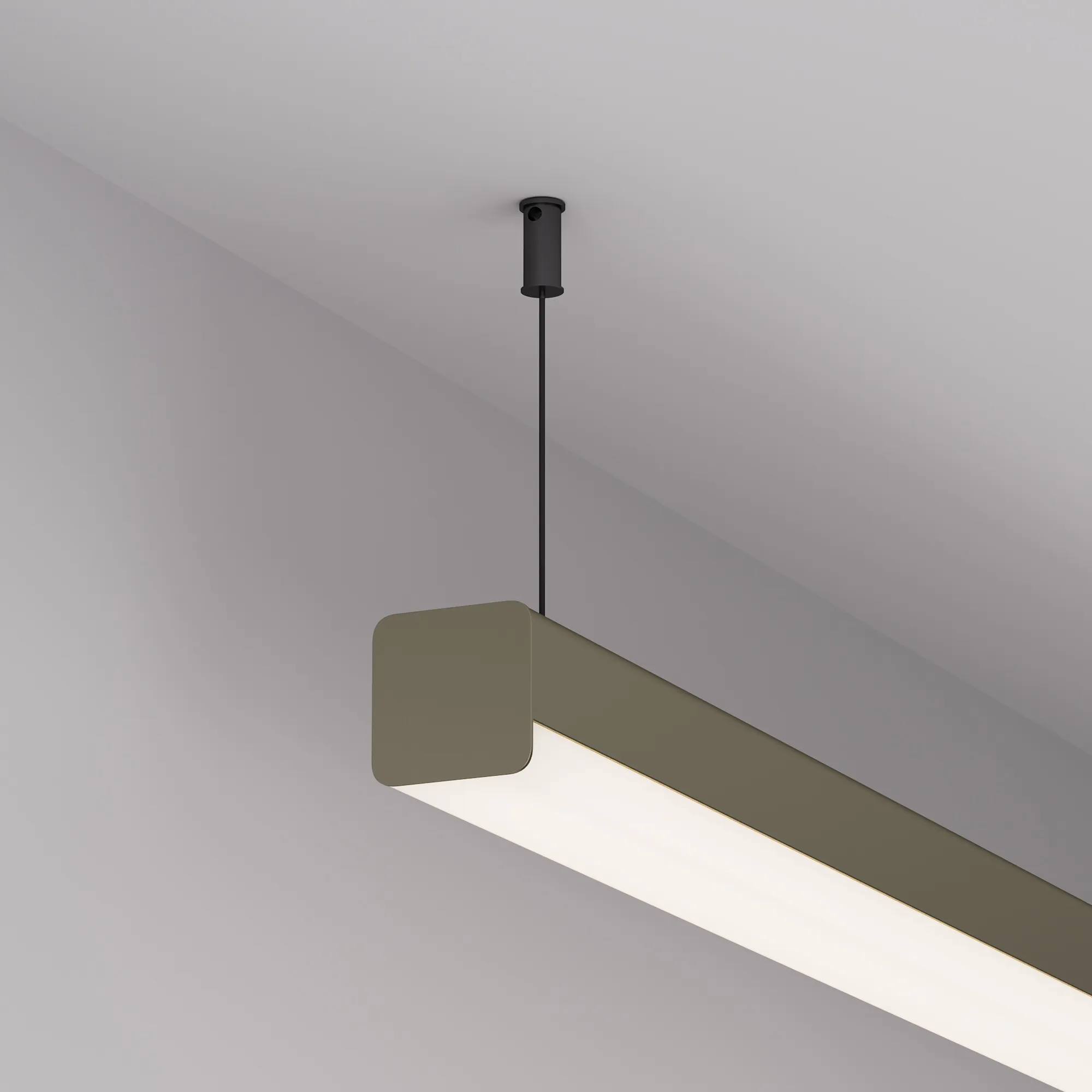 Комплект профиля с экраном и заглушками. Подвесной профиль со скругленными углами и объемным матовыми экраном из поликарбоната идеально подходит для основного освещения и создания дизайнерских светильников. Цвет - серо-оливковый. Габаритные размеры (L×W×H): 2000x30x30 мм. Ширина площадки для ленты 12,6 мм. Аксессуары приобретаются дополнительно.