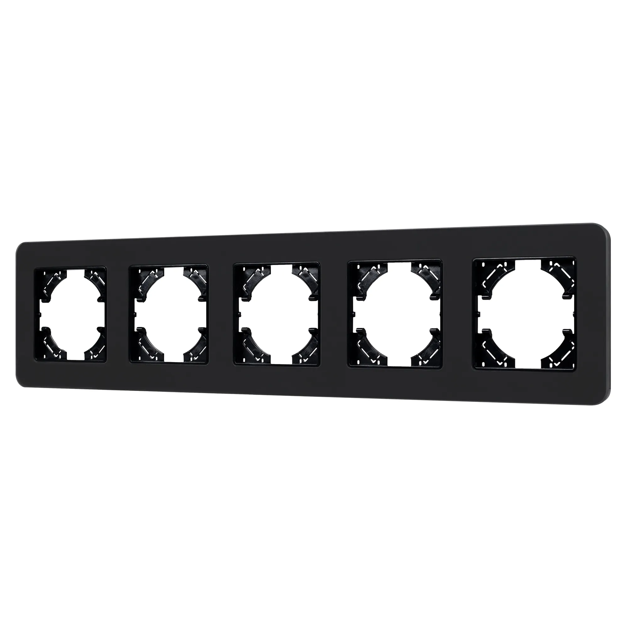 Рамка стеклянная на 5 постов, под встраиваемый механизм. Цвет - черный с Soft-Touch покрытием. Уровень герметичности IP20. Ориентация монтажа - горизонтальная (основным ориентиром служат посадочные выступы для накладки механизма).