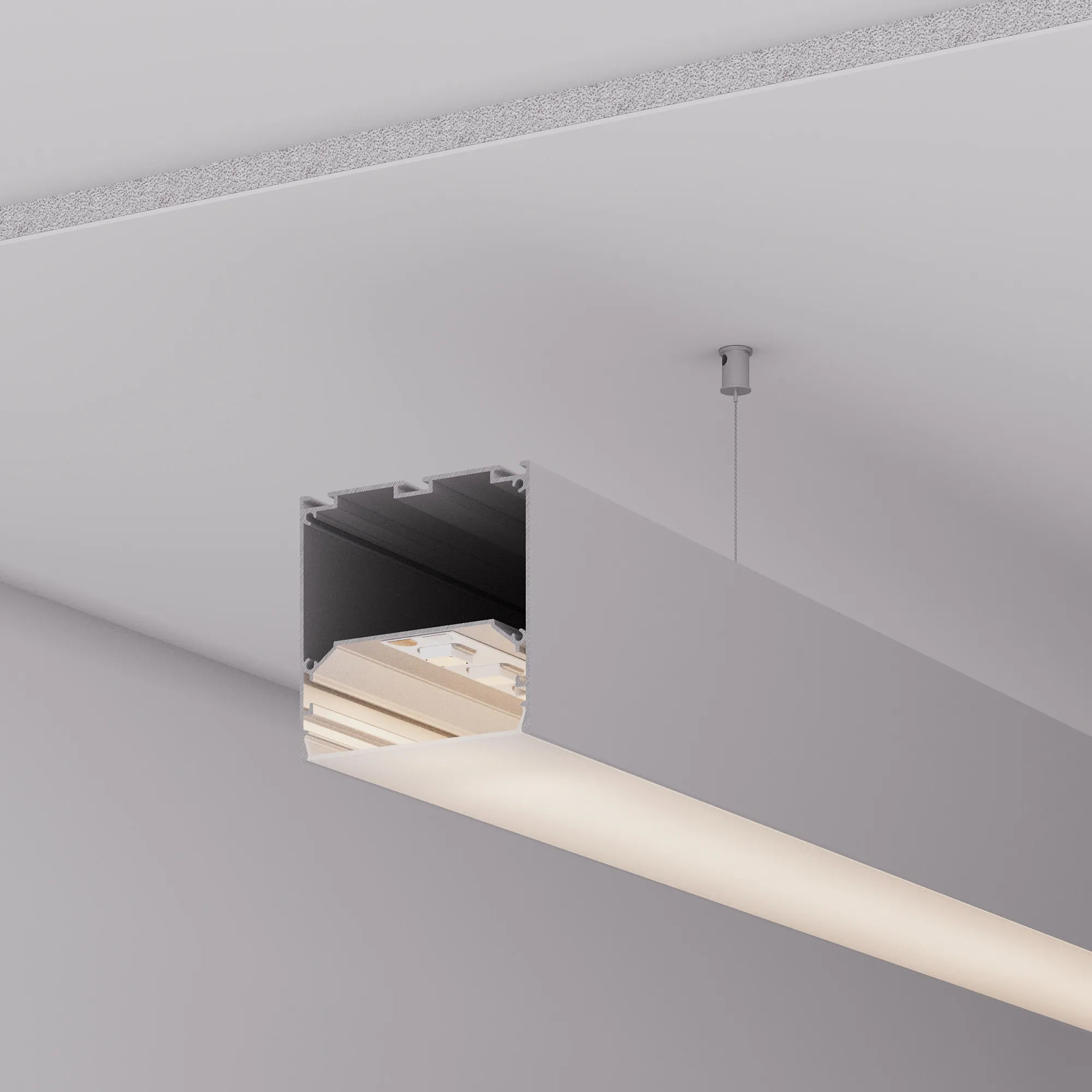 Алюминиевый анодированный профиль для светодиодных лент и линеек. Габаритные размеры (L×W×H): 2000x75x75 мм. Ширина площадки для ленты 50 мм. Отсек для БП 72,5х33,3 мм. Экраны, заглушки и другие аксессуары приобретаются отдельно. Цена за 1 метр.