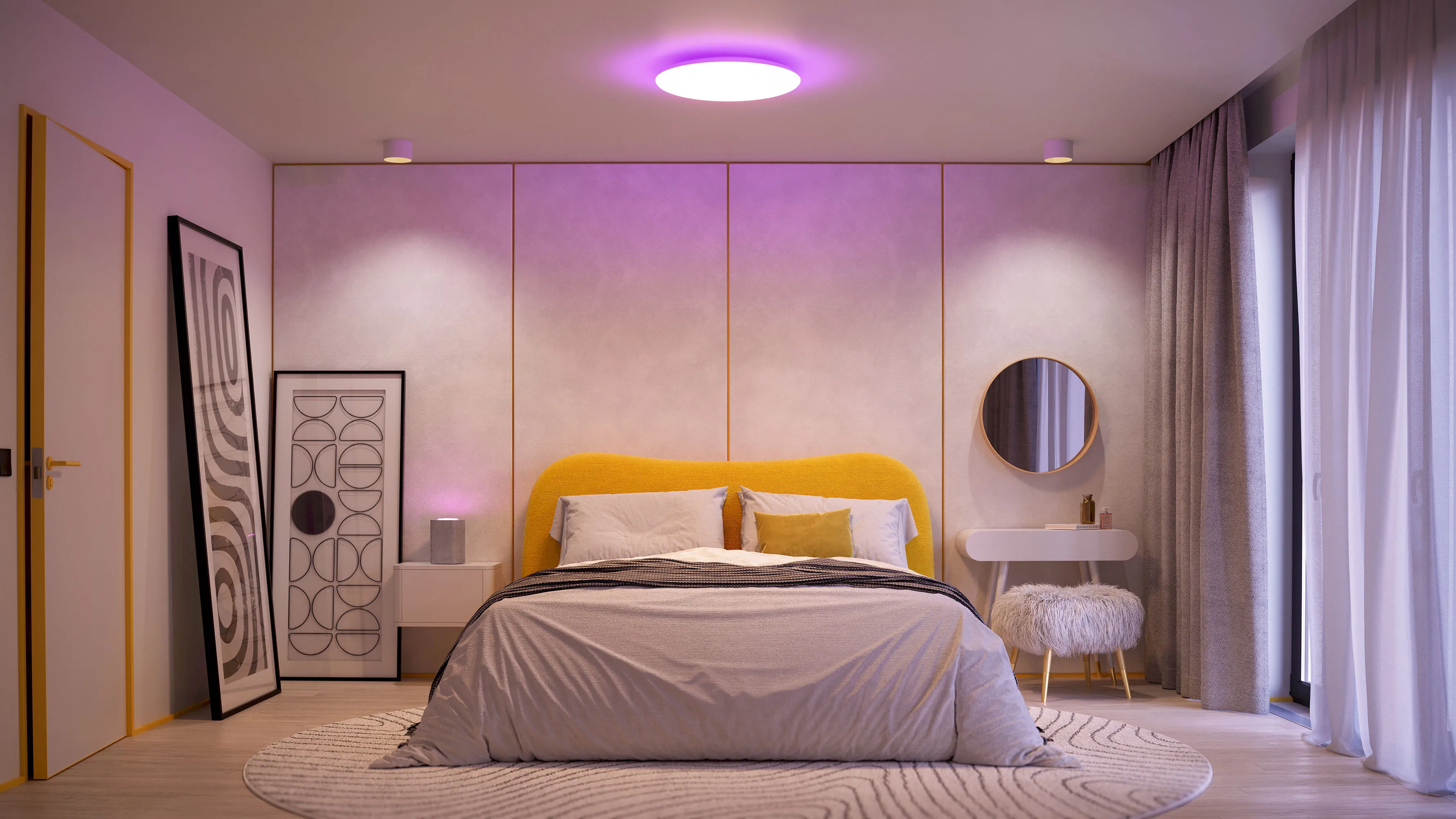 Светодиодный светильник с изменяемой цветовой температурой в диапазоне от 2700К до 6500К, с верхней подсветкой RGB. Мощность полная 50 Вт, св. поток 3000-3750 лм, 60-75 лм/Вт, CRI>90, угол 100°, напряжение питания 230 В. Белый круглый корпус из пластика, экран PC, степень защиты IP20. Размер: диаметр 570 мм, ширина 600 мм, высота 114 мм. Монтаж накладной. Драйвер TUYA Zigbee 23-40 В, 1300 мА, пульсация <5%. Мобильное приложение Smart Life или Intelligent Arlight для iOS и Android.